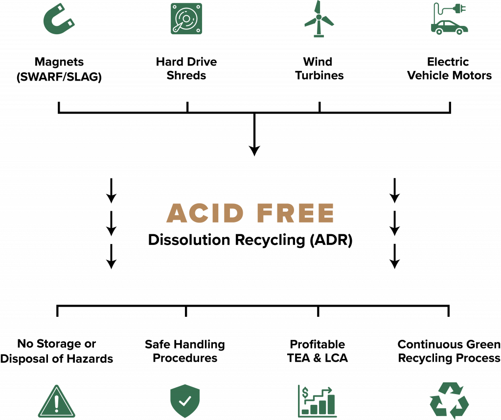Critical Materials Recycling deploys the ADR process at commercial scale to serve partners across the electronics and magnet supply chain.
